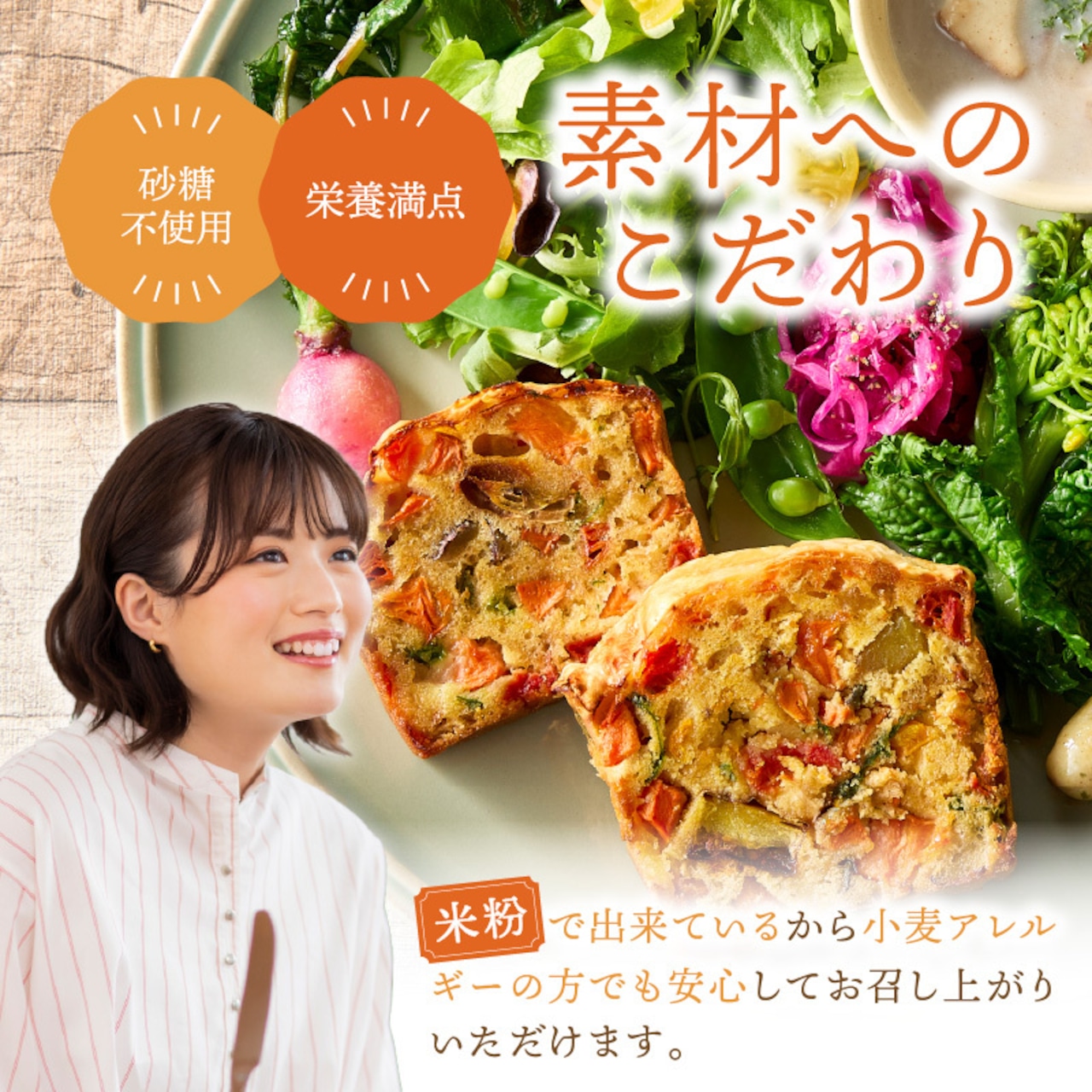 砂糖を使わない、米粉でできた野菜の塩ケーキ、“ケーク・サレ”。